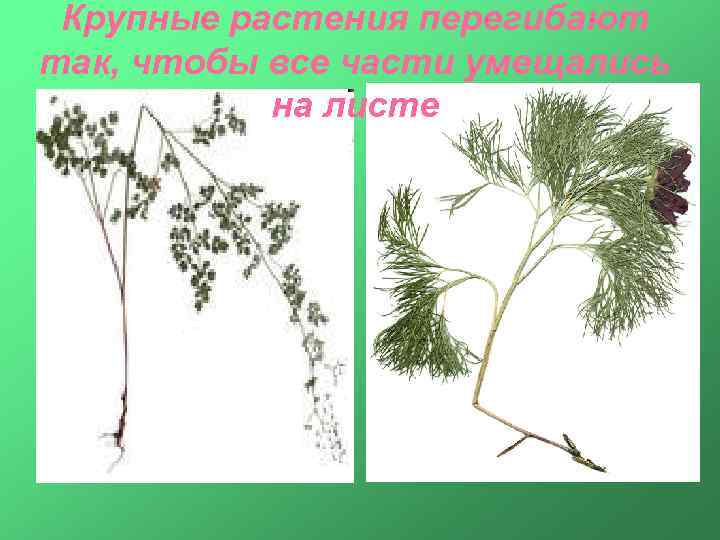 Крупные растения перегибают так, чтобы все части умещались на листе