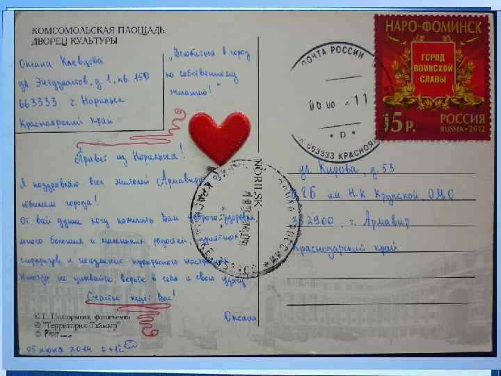 Шаг третий. С 1 июня по 15 сентября отправьте открытку по почте на адрес: 352900, Краснодарский край, г. Армавир, ул. Кирова, 53, Центральная городская библиотека им. Н. К. Крупской с пометкой: «Влюбиться в город…»