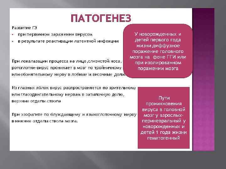 Причины герпетического энцефалита Первичное инфицирование вирусом простого герпеса (дети и молодые люди до 30 лет); рецидивирование (повторное проявление) хронической инфекции; реинфицирования (новое заражение) другим видом вируса герпеса.