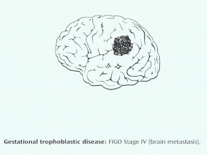 Brain metastasis • • • Plasma CSF /h. CG level ratio is normally >60: 1 In patients with CNS metastases <60: 1 Falsely lowered plasma CSF /h. CG level First -trimester abortions In the absence of lung or vaginal metastasis Risk of cerebral and hepatic spread is exceedingly low