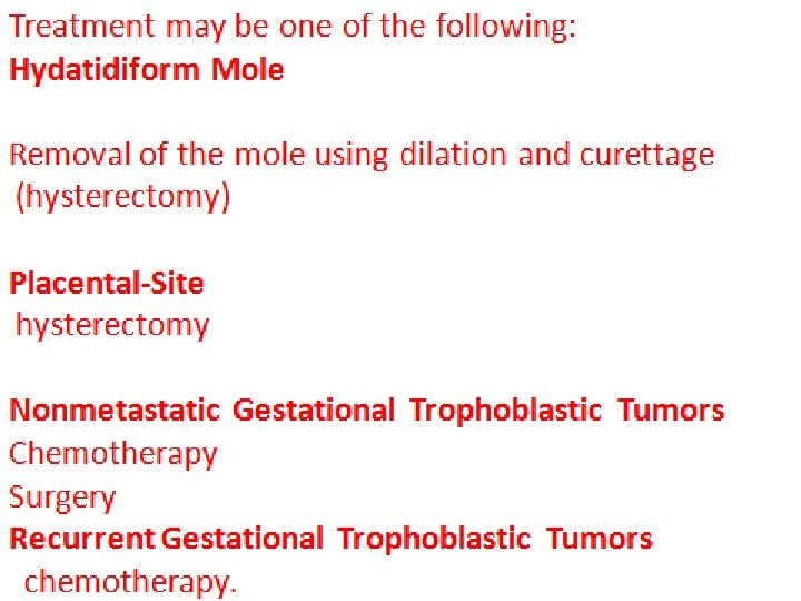 Possible risk for developing • • Subsequent GTN Preterm delivery Preeclampsia Sever hemorrhage
