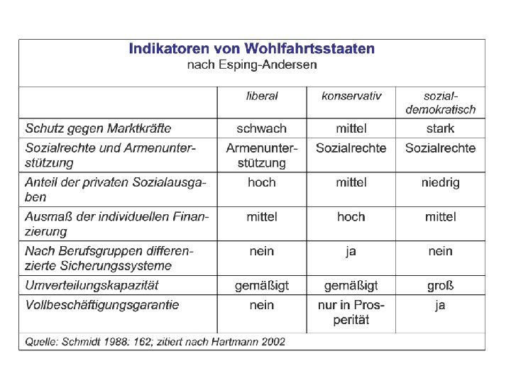 Gesundheitssysteme im Vergleich 4. Esping-Anderson. . . and now please enter the famous "Three Worlds of Welfare Capitalism" Ein sozialdemokratischer Sozialwissenschaftler preist die Komplementarität der Ansätze und weist den Weg zum neuen Wellfaremix. Gøsta Esping-Andersen