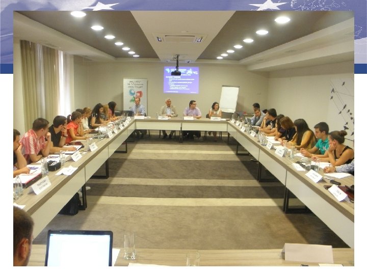 Team / Stuff • Trainers – a professional trainer and two additional trainers • Lecturers – one University Professor and one from a partner organization – Center of European and International Studies – EU topic • Discussion moderator