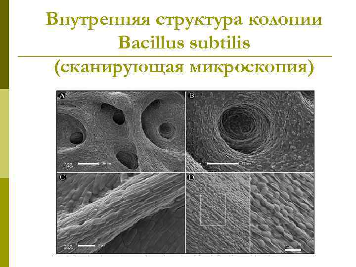 Внутренняя структура колонии Bacillus subtilis (сканирующая микроскопия)