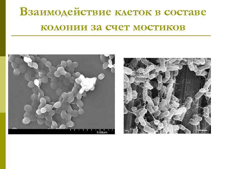 Взаимодействие клеток в составе колонии за счет мостиков