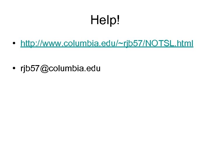 Help! • http: //www. columbia. edu/~rjb 57/NOTSL. html • rjb 57@columbia. edu
