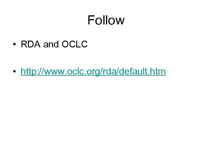 Follow • RDA and OCLC • http: //www. oclc. org/rda/default. htm