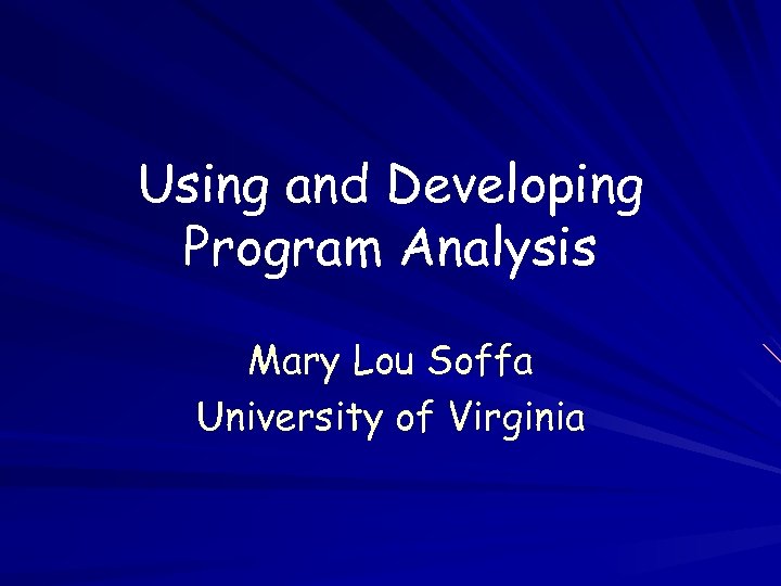 Using and Developing Program Analysis Mary Lou Soffa University of Virginia