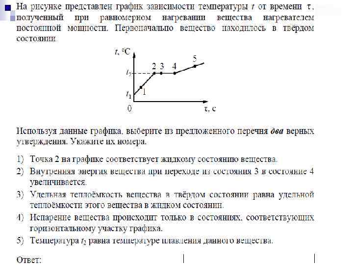 В бланке ответов: n 1) нарисуйте электрическую схему эксперимента; n 2) установив с помощью реостата поочередно силу тока в цепи 0, 4 А, 0, 5 А и 0, 6 А и измерив в каждом случае значения электрического напряжения на концах резистора, укажите результаты измерения силы тока и напряжения для трех случаев в виде таблицы (или графика); n 3) сформулируйте вывод о зависимости силы электрического тока в резисторе от напряжения на его концах.