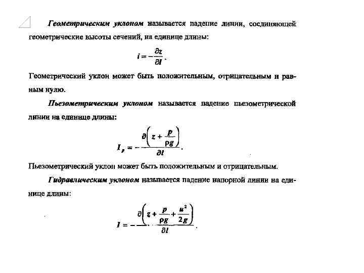 Последнее уравнение носит название уравнения Бернулли. Оно отличается от основного уравнения гидростатики появлением третьего члена u 2/2. Другая форма этого уравнения Все его члены имеют размерность высоты. Они носят соответственно названия пьезометрической, геометрической и скоростной высот. Для разных жидких струек значение константы может быть различным. Однако, если все линии тока начинаются в области, где жидкость покоится или движется равномерно и прямолинейно, то постоянная для всех струек тока одинакова и уравнение Бернулли применимо для потока в целом. Трехчлен Бернулли можно рассматривать как сумму удельной потенциальной энергии, которая состоит из энергии положения и энергии давления и удельной кинетической энергии. Перед тем, как рассмотреть практическое использование уравнения Бернулли введем некоторые определения общего характера, касающиеся движения жидкостей.