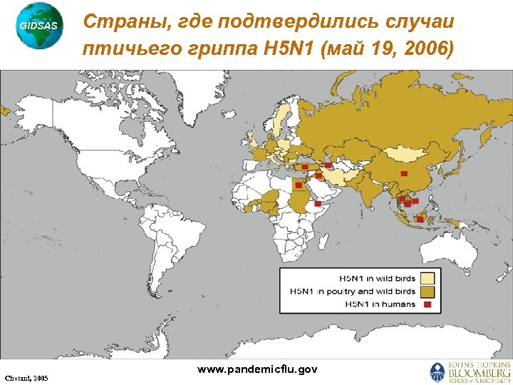 GIDSAS Chotani, 2005 Страны, где подтвердились случаи птичьего гриппа H 5 N 1 (май 19, 2006) www. pandemicflu. gov