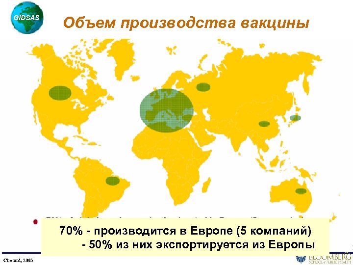 GIDSAS Объем производства вакцины 70% - производится в Европе (5 компаний) - 50% из них экспортируется из Европы Chotani, 2005