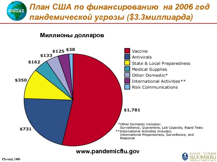 GIDSAS План США по финансированию на 2006 год пандемической угрозы ($3. 3 миллиарда) Миллионы долларов www. pandemicflu. gov Chotani, 2005