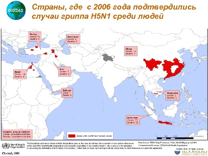 GIDSAS Chotani, 2005 Страны, где с 2003 года подтвердились случаи гриппа H 5 N 1 среди людей