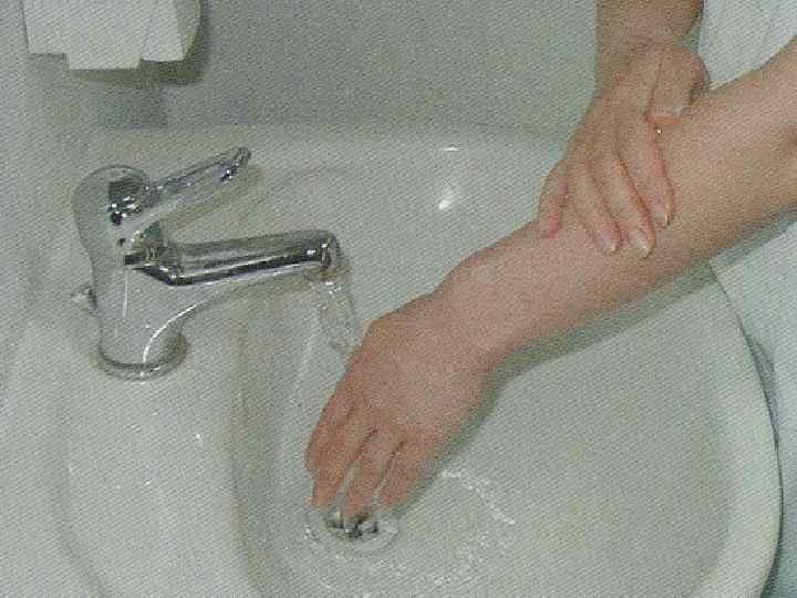 Показания для хирургической обработки рук. • Оперативные вмешательства. • Родоразрешение. • Катетеризация магистральных сосудов. • Пункции суставов и полостей. Два этапа: 1. Мытье рук мылом и водой в течение двух минут, затем высушивание стерильным полотенцем (салфеткой). 2. Обработка антисептиком кистей рук, запястий и предплечий.