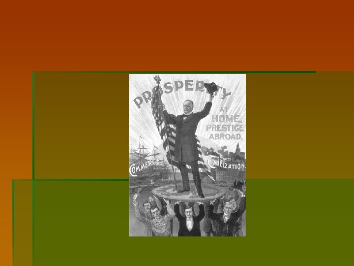 Significance of 1896 election § Populist party declined after 1896 § 1896 was a victory for big business, urban centers, conservative economics, & moderate middle-class values § William Mc. Kinley was first modern president § Mark Hanna created a new model for running political campaigns