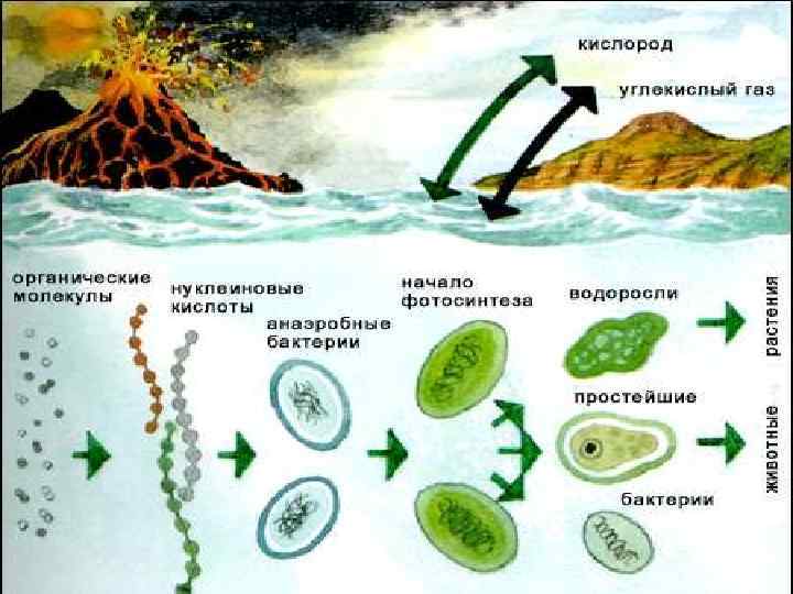 Біохімічна еволюція Відповідно до теорії абіогенного синтезу, життя виникло в специфічних умовах стародавньої Землі і розглядається Опаріним як закономірний результат хімічної еволюції сполук вуглецю у Всесвіті.