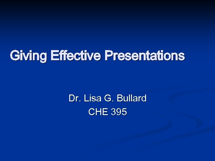 Giving Effective Presentations Dr. Lisa G. Bullard CHE 395