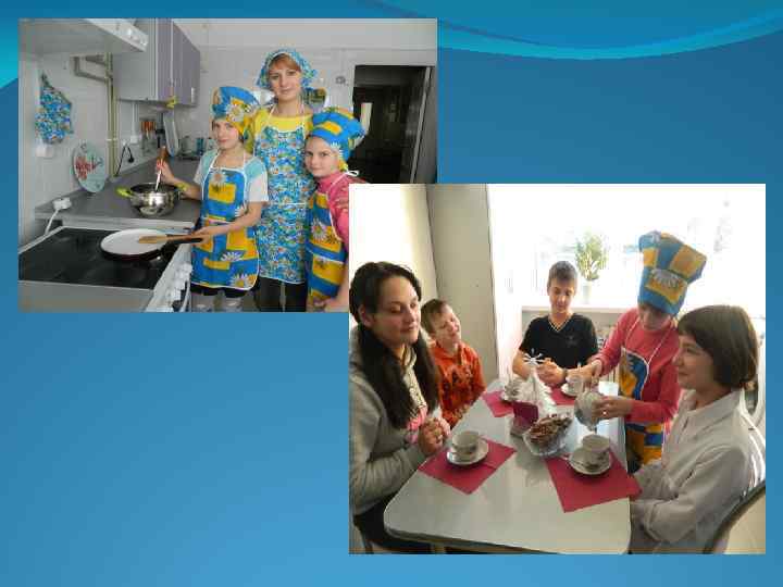 Цель и задачи программы Цель: социально-бытовая адаптация детей, находящихся в трудной жизненной ситуации, детей с ограниченными возможностями и интеграция их в общество. Задачи: • Обучающие: формировать знания, умения, навыки бытового труда и применять их в жизнь; обучить безопасному обращению с инвентарем, оборудованием при обработке продуктов и электронагревательными приборами; . • Развивающие: расширять знания по технологии приготовления блюд, правил ухода за жильем, стирке и глажению одежды; • Воспитывающие: воспитывать уважительное отношение к труду людей; формировать позитивную установку на семейную жизнь.