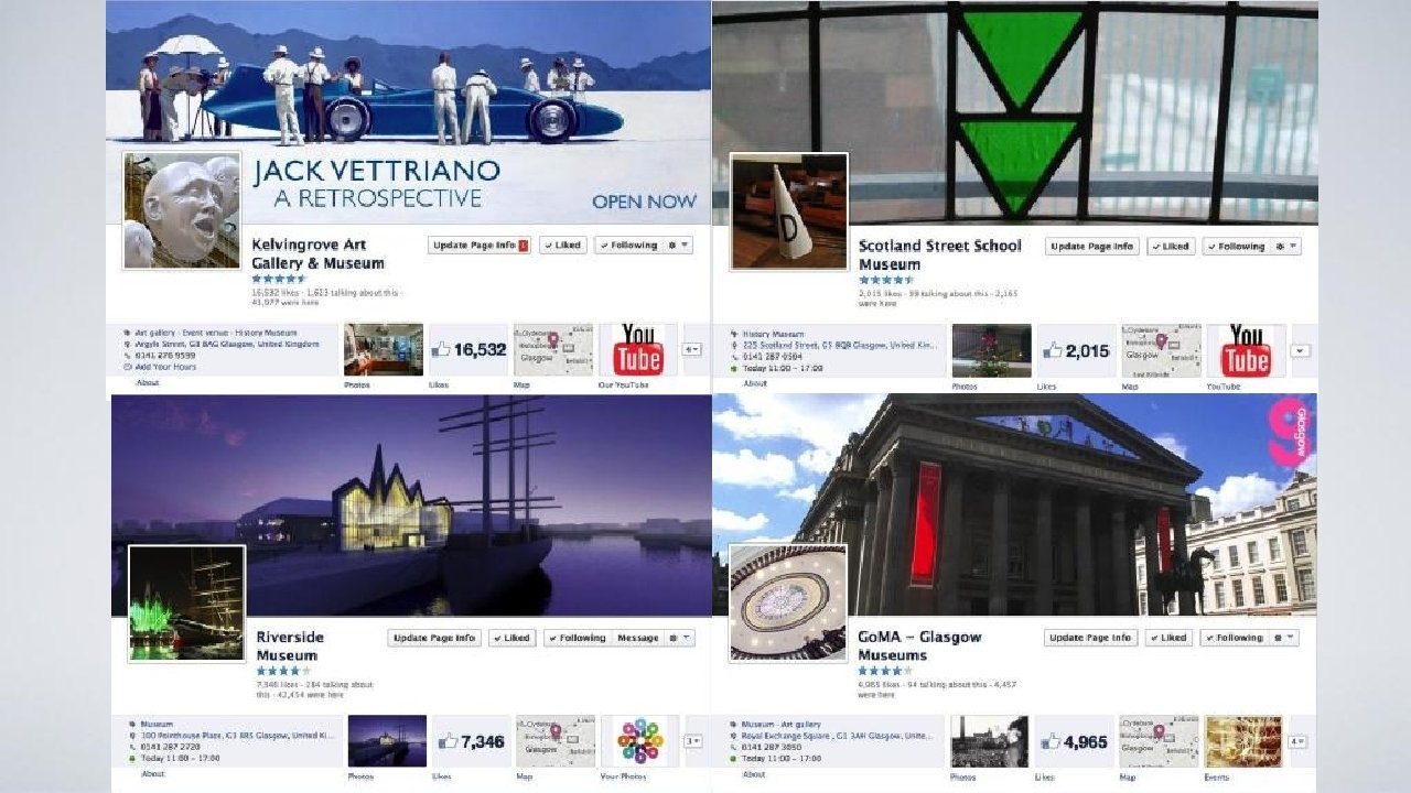 Digital & New Media at Glasgow Museums 1 2 3 4 5 Social Media Management Riverside Kelvin Hall Project Collections Navigator Glasgow Life Photo Library