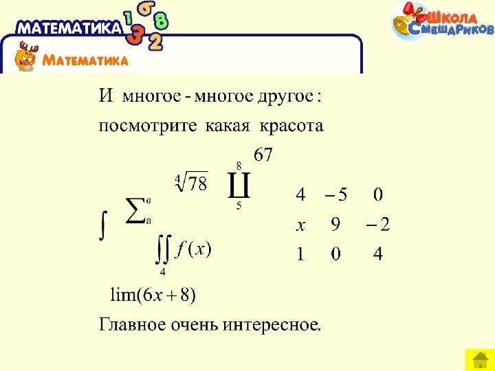 Что такое математика Вы знаете, что математика возникла в Древней Греции еще в 6 - 5 веках до нашей эры? У греков эстафету переняли арабы, а уж потом эта новая наука дошла и до европейцев. Слово "математика" происходит от греческого слова mathema знание, учение, наука. Она изучает числа и величины, отношения и характеристики элементов множества, их сходства и отличия, форму и объем предметов, и способ решения задач с помощью действий! Поэтому, математика и объединяет в себе много различных разделов: арифметика, геометрия, алгебра, логика и другие, не менее интересные.