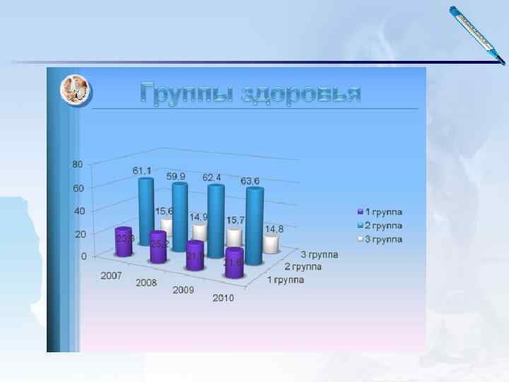 Подростки-школьники (%) 2005 2006 2007 2008 2009 Группы здоровья Здоровые подростки 21. 3 20. 8 20. 3 21. 0 20. 6 Подростки с функциональными расстройствами 51. 8 51. 6 56. 7 54. 5 56. 0 Подростки с хроническими формами заболеваний 26. 8 27. 6 23. 0 27. 4 23. 4 Физическое развитие -ниже среднего 8. 0 7. 7 6. 8 7. 1 -среднее 82. 2 81. 5 82. 4 79. 0 -выше среднего 9. 8 10. 8 13. 9