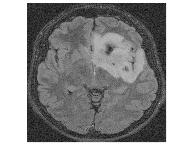 Астроцитома (фокальная) контрастное усиление 40 лет, Парестезии несколько лет, диагноз: рассеянный склероз. Перед исследова- нием - судорожный припадок