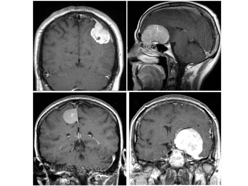 Менингеома большого серповидного отростка. Вверху - T2-W Внизу - T1-W