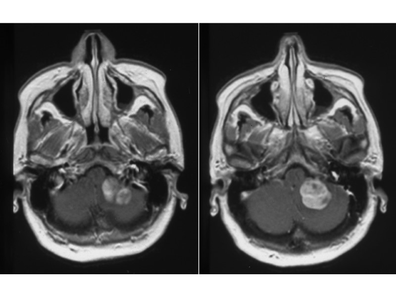 Шваннома слухового нерва (T1-W с контраст- ным усилением)
