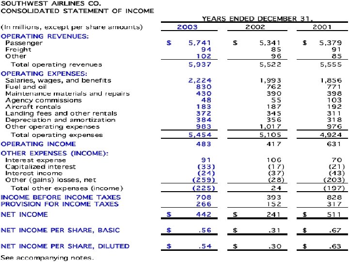 Company History Q Commenced service on June 18, 1971 – using 3 Boeing 737 aircraft servicing state of Texas Q simple notion: lowest possible fares, ontime delivery, and excellent customer service. Q Became a major airline in 1989 Q 2003 was 31 st consecutive year of profitability