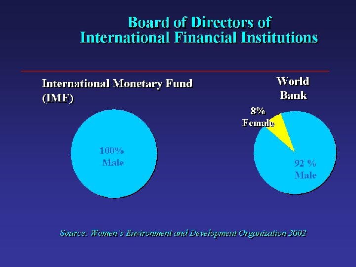 Gender Mainstreaming at World Health Organization • Gender and Women’s Health Department at WHO • Gender Team at WHO promote awareness into programs at WHO and public health work • Gender Task Force – senior level managers report gender mainstreaming to Director General