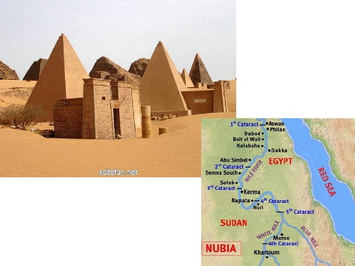 Eastern African Civilizations Nubia (3000 BCE – 400 BCE) Axum (400 BCE – 7 th century CE) Swahili States (began 7 th century CE) Co-existed along the Nile with Ancient Egypt. Lived in Upper Egypt. Axum conquered Nubia. Arab and Persian merchants built cities along Africa’s eastern coast. Was controlled by Egypt for much of its history, but Nubia took control of Nubia for a short time! Due to its location on the Red Sea, it had a thriving trade network linking the Mediterranean, Africa and India. Cultural diffusion led to a new language and culture, Swahili (a mix of Arabic and Bantu). Built pyramids and tombs similar to Egyptian ones, but on a smaller scale. Cultural diffusion between Jews, Christians and Muslims.