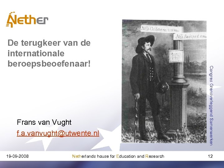 Frans van Vught f. a. vanvught@utwente. nl 19 -09 -2008 Netherlands house for Education and Research Congres Grensverleggend Samenwerken De terugkeer van de internationale beroepsbeoefenaar! 12