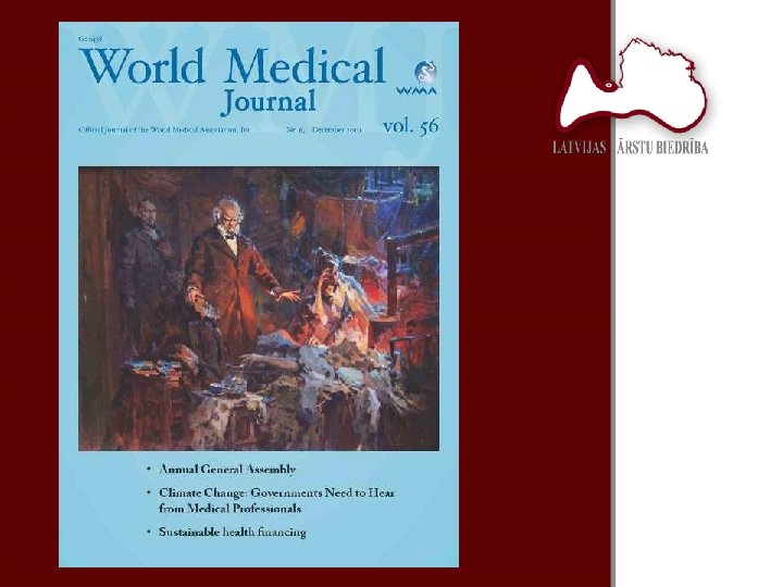 Национальные общества врачей — серьезнейшая сила общественного здоровья. Задачами врачебных обществ являются: • защита профессиональных, экономических и правовых интересов врачей • повышение престижа и уважения к профессии врача как свободной профессии • совершенствование кодекса врачебной этики и забота о профессиональной этике