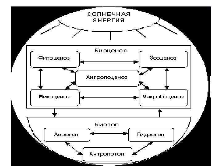 l Централизованность. Центральным звеном биосферы выступают живые организмы (живое вещество). Это свойство, к сожалению, часто недооценивается человеком и в центр биосферы ставится только один вид человек (идеи антропоцентризма).
