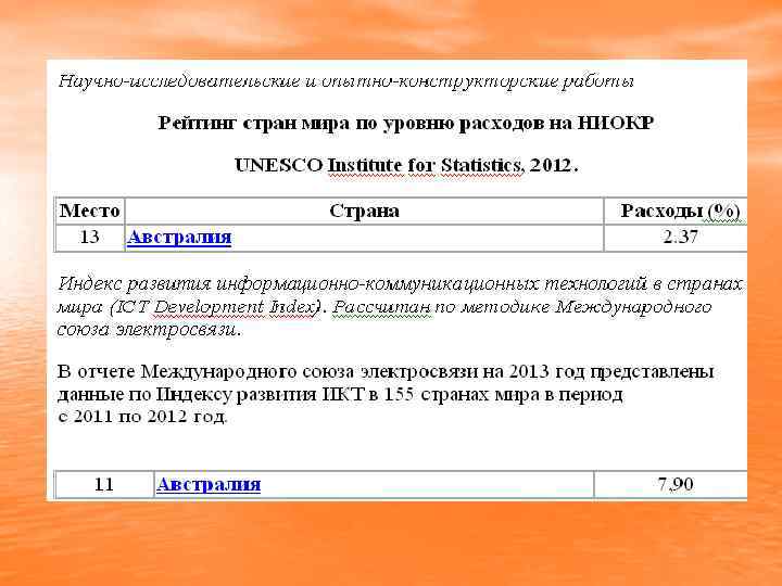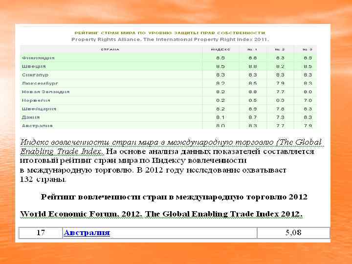 Показники Австралії • Австралія очолила рейтинг країн світу за динамічності економічного розвитку 2013 (Global Dynamism Index 2013), • Індекс глобалізації KOF Swiss Economic Institute, The 2013 Index of Globalization. 21 місце (81. 59) Австралія • Рейтинг глобальної конкурентоспроможності 2013 -2014 World Economic Forum, 2013. The Global Competitiveness Report 2013 -2014. 21 місце