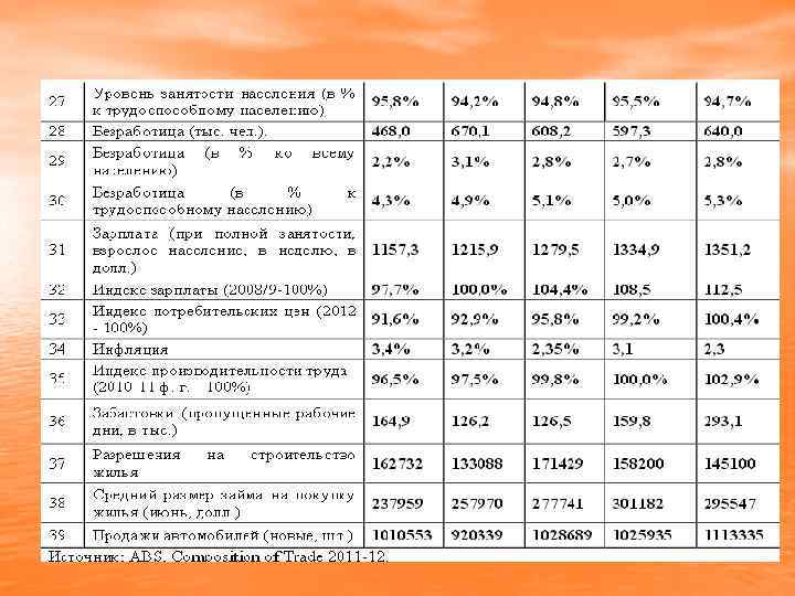Основні економічні та соціальні показники Австралії з 2007 -2012 рр.