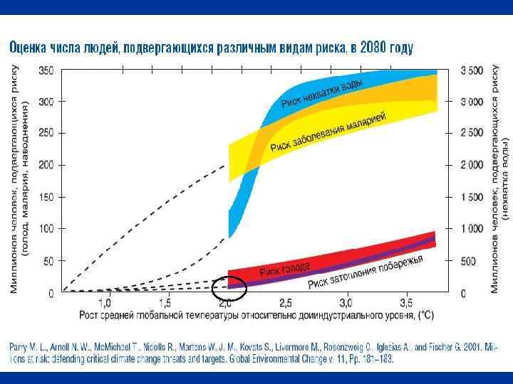 С 1990 года рост температуры можно объяснить только антропогенным воздействием Черные кривые – динамика температуры приземного слоя воздуха в России за последние 110 лет: тонкая (1) – данные за каждый год, толстая (2) – скользящее осреднение за 11 лет. Голубая кривая – расчеты по моделям с учетом только естественных факторов. Красная кривая – расчеты по тем же моделям с учетом естественных и антропогенных факторов. По вертикальной оси – отклонения от средней температуры за 1901– 1950 гг. Источник: Оценочный доклад об изменениях климата и их последствиях на территории Российской Федерации. М. : Росгидромет, 2008. http: //climate 2008. igce. ru