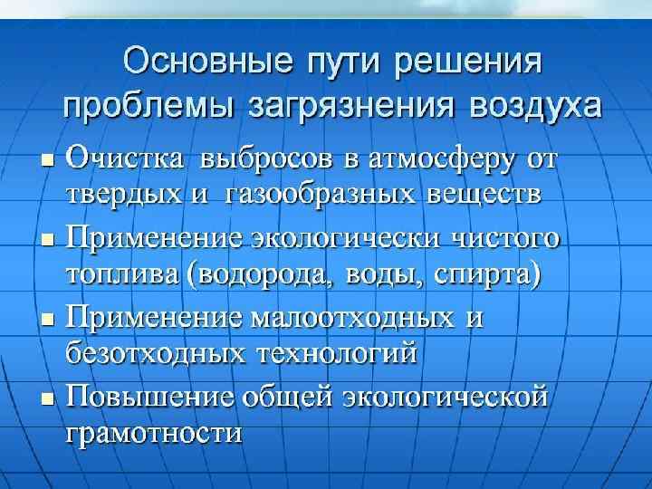 Глобальные экологические проблемы «загрязнение воздушного и водного бассейнов Земли»