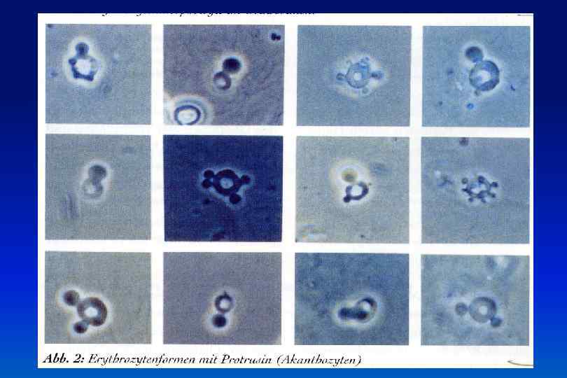 А В Фазовоконтрастная микроскопия: акантоциты Дискоциты в осадке мочи Б Г Дисморфизм эритроцитов (Ig. А нефропатия) Электронная микроскопия: акантоциты