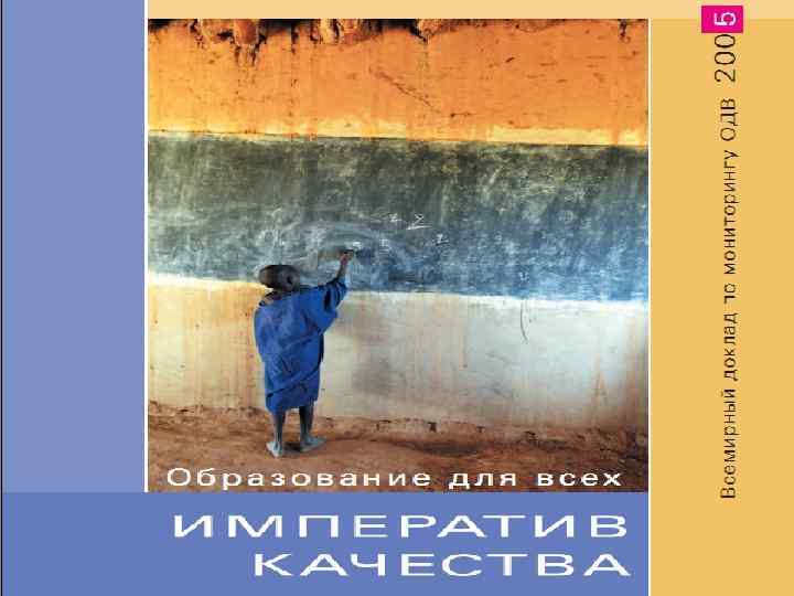 Общая картина качества образования Ресурсы Инд. черты учащихся • способности • усидчивость • готовность к школе • предыдущие знания • препятствия к учебе • экономические условия • возможности трудоустройства • социальнокультурные и религиозные факторы Преподавание и обучение • учебное время • методика преподавания • оценка, обратная связь, стимулы • размер класса • материалы для преподавания и обучения • людские ресурсы (учителя, управленцы) • специализированные помещения Контекст • государственные ресурсы образования • педагогические знания и вспом. инфраструктура • конкурентоспособность учит. профес. на рынке труда • национальное правление и стратегии менеджмента • влияние сверстников • поддержка со стороны родителей • имеющееся время для учебы в школе и работы дом Результаты • навыки грамотности, счета • жизненные навыки • творческие и эмоциональные навыки • ценности • социальные блага • национальные стандарты • ожидания общественности • потребности рынка труда • глобализация