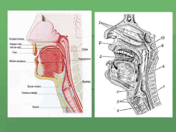 Фізіологія глотки Глотка виконує чотири основні функції: 1. Дихальну – проходження повітря у гортань. 2. Проходження рідини та їжі у стравохід. 3. Захисну – запобігання проникненню сторонніх тіл та подразнюючих речовин (хімічне та термічне подразнення) у нижчерозміщені відділи травної та дихальної систем; участь в імунітеті, а також зігрівання, зволоження та знезараження повітря тощо. 4. Мовну – артикуляція та резонанс звуків під час мовлення.