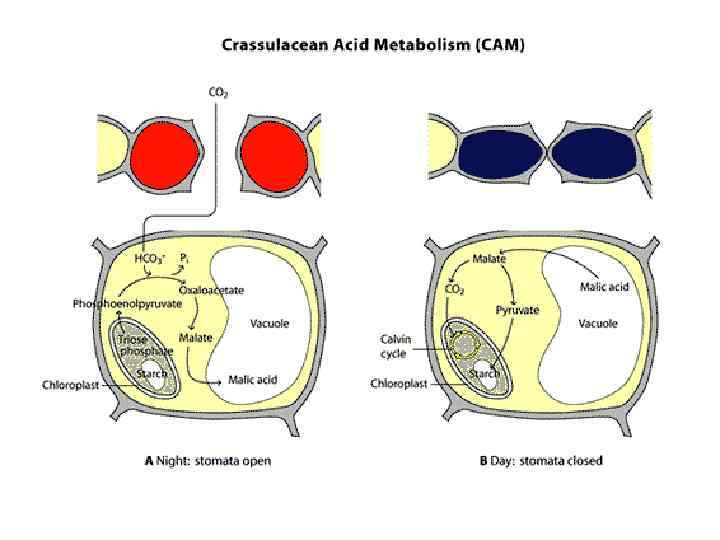 Фотодыхание 1. ribulose 1, 5 -bisphosphate 2. 3 -Phosphoglycerate 3. 2 -phosphoglycolate 4. glycolate 5. glyoxylate 6. glycine 7. serine 8. hydroxypyruvate 9. glycerate CC calvin cycle