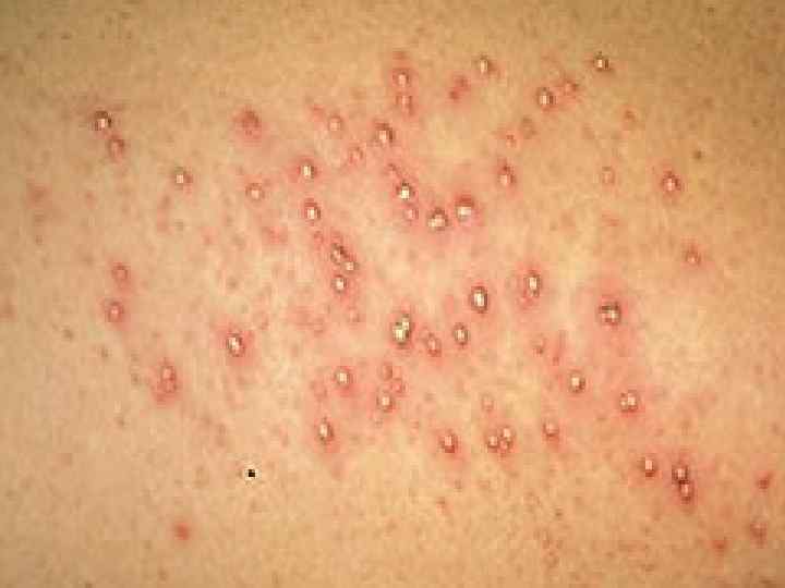 Формы буллезного импетиго n Везикулопустулез- заболевание обусловлено воспалением в области устьев потовых желез и проявляется тем, что на коже бедер, ягодиц, естественных складок, головы отмечаются мелкие пузырьки, наполненные прозрачным, а затем мутным содержимым. Течение доброкчественное.