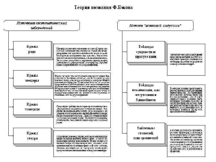 Достижение истины – точного соответствия S и О Метод: эксперимент, основанный на индукции Две части метода: «Первая состоит в извлечении аксиом из опыта, вторая — в выведении новых экспериментов из аксиом» . Неправильные индуктивные умозаключения: "сразу приступает к общим, бесполезным понятиям"