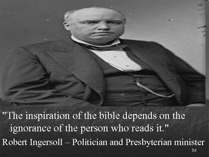 "The inspiration of the bible depends on the ignorance of the person who reads it. " Robert Ingersoll – Politician and Presbyterian minister 54