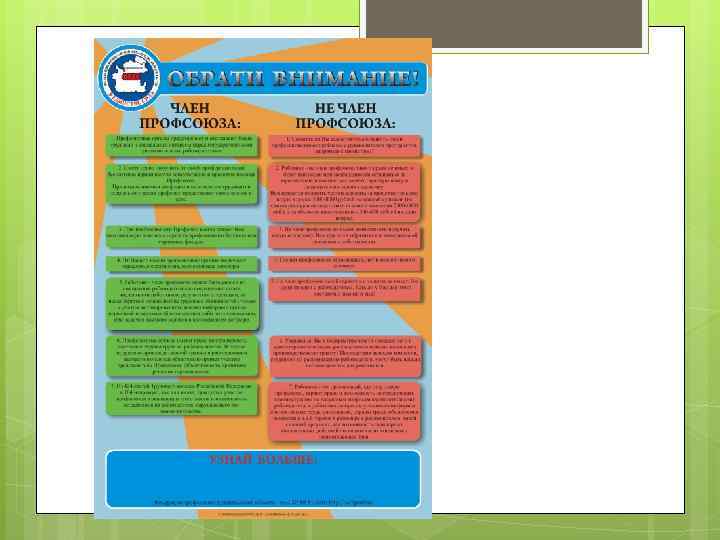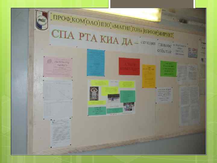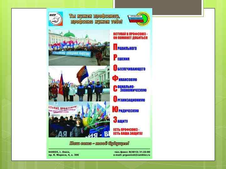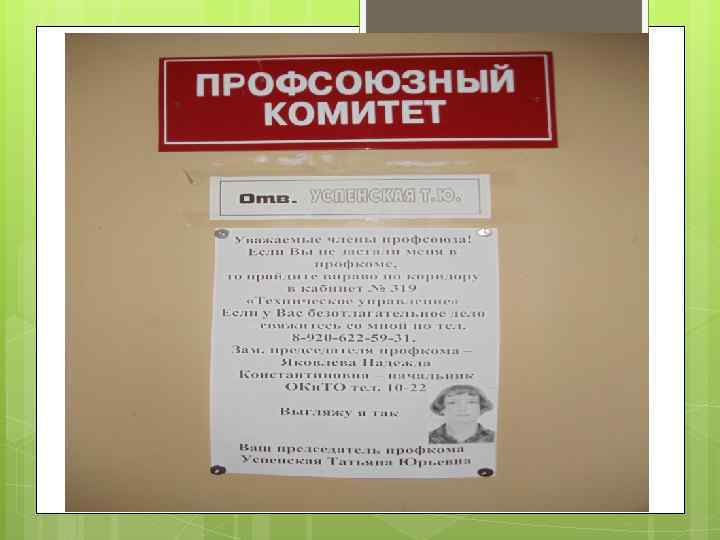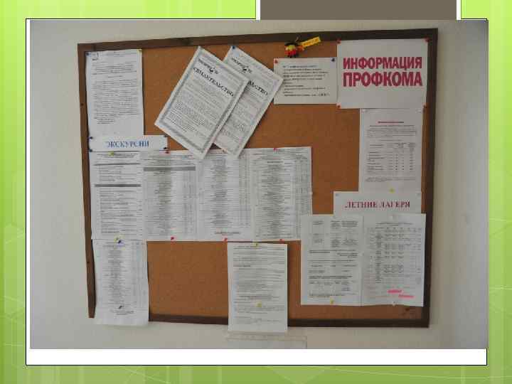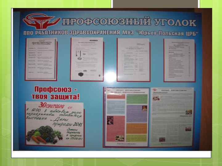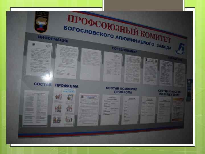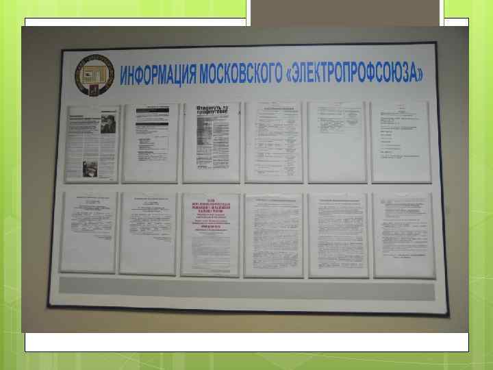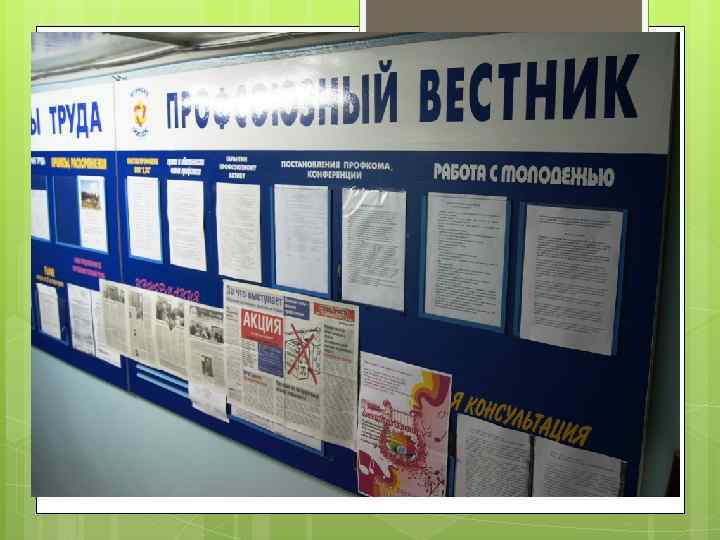 Профсоюзный стенд - Должен быть размещен в открытом для доступа месте - Должен быть удобен оперативной работы для - Должен содержать полезную информацию