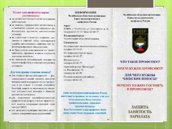 Информация для… Приступая к работе с информацией, важно понимать, что вы готовите не «информацию о…» , а «информацию, необходимую для…» для членов профсоюза