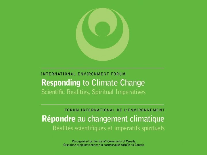 “Only a comprehensive vision of a global society, supported by universal values and principles, can inspire individuals to take responsibility for the long-term care and protection of the natural environment. Bahá’ís find such a world embracing vision and system of values in the teachings of Bahá’u’lláh – teachings which herald an era of planetary justice, prosperity and unity. ” Bahá’í International Community