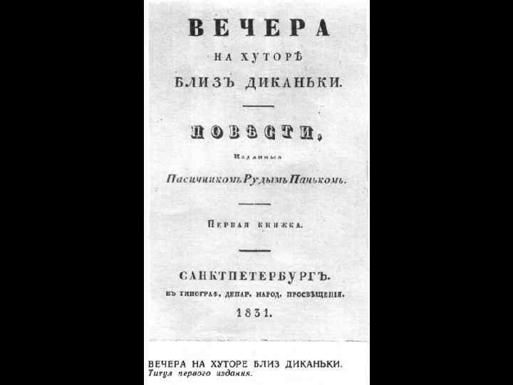 1 период 1829 – 1835 гг. -петербургский п-р: • «Вечера на хуторе близ Диканьки» (1831 - 1832) • «Миргород» и « Арабески» (1835 г. )